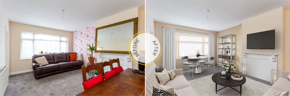 Upon close inspection, the overall layout of each simulated room both before and after is identical, but the details added through the staging process can be so drastically different that you’ll be forgiven for thinking they’re totally separate spaces!